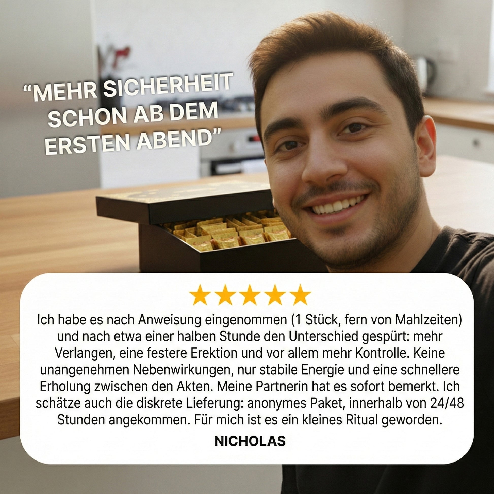 Es ist ein Nahrungsergänzungsmittel, kein Medikament: Es wird keine Erkrankungen behandelt. Es unterstützt die Leistung mit einem natürlichen und wirksamen Boost . Bei anhaltenden Problemen konsultiere bitte deinen Arzt .
